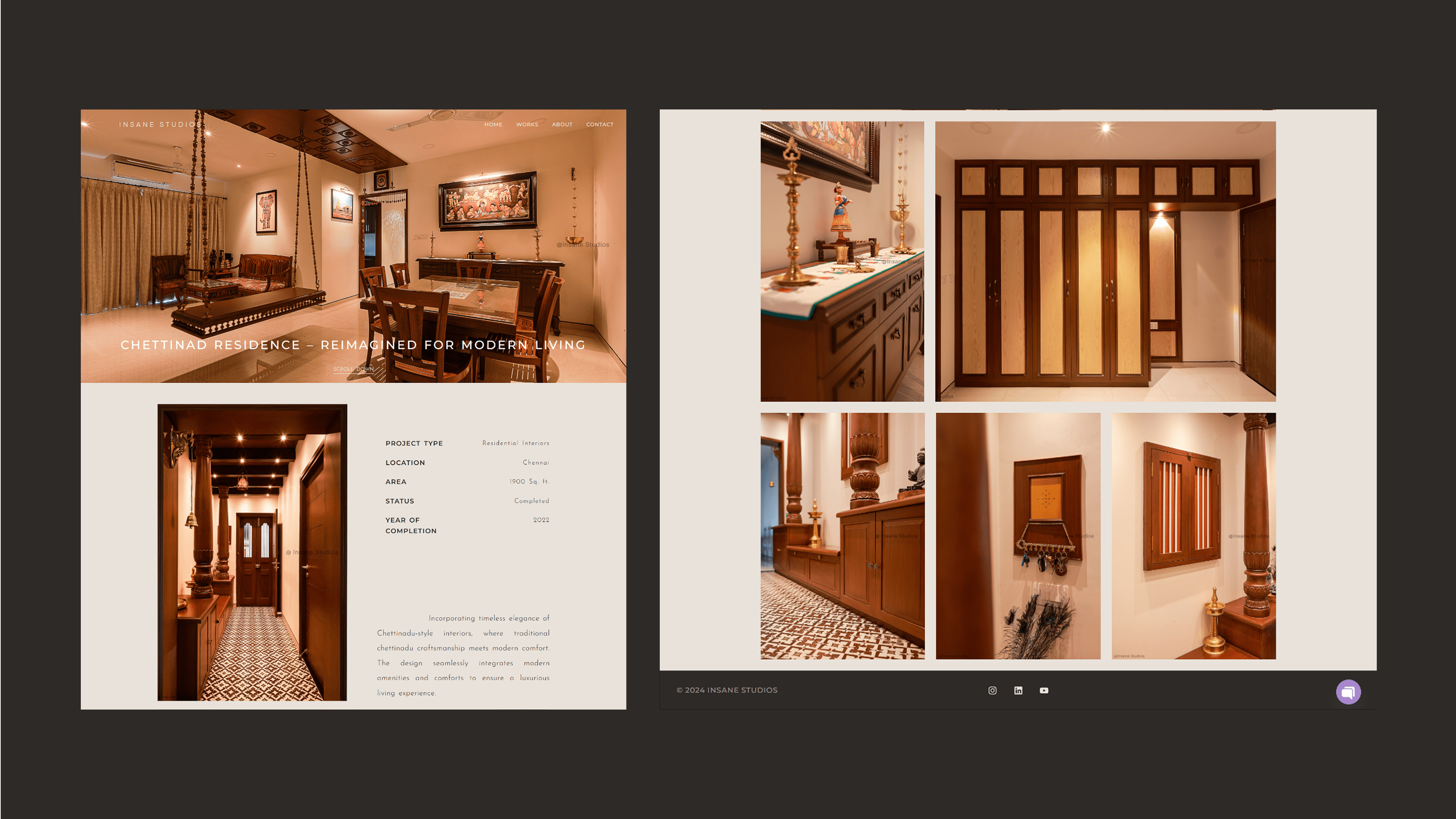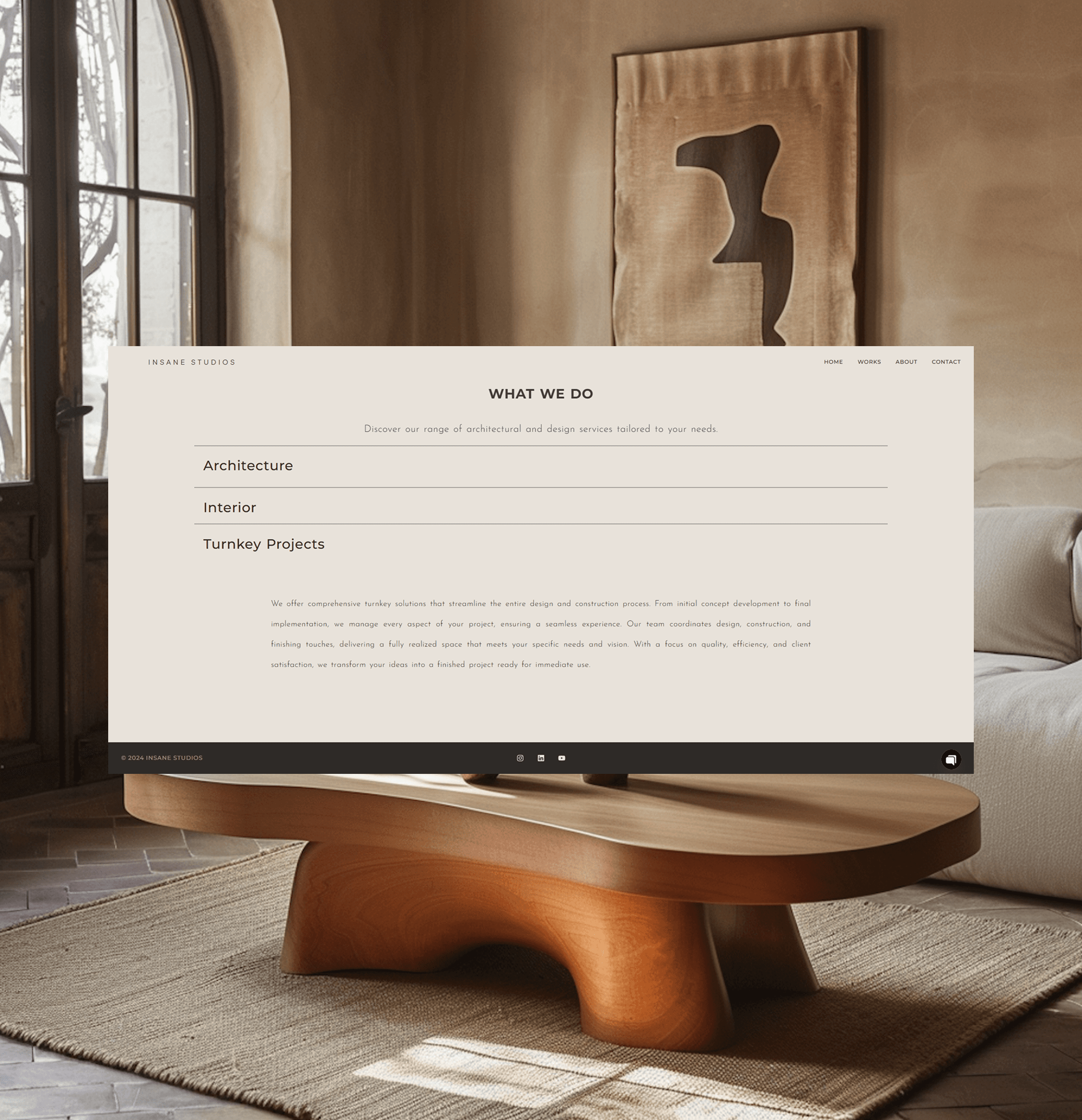 Insane Studios approached me to design and develop their website. I created a minimalist visual identity with refined colors, typography, and layout to reflect their modern architectural aesthetic. Built in Elementor with custom code integrations, the site features a smooth scroll-based slideshow powered by Swiper.js and subtle GSAP animations for an elegant, dynamic feel. Foundational SEO was also implemented to strengthen their online presence.